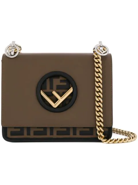 Fendi Women S Small Kan I F Crossbody Navy Bag Boxed Crossbody With Gold And Silvertone Accents Leather Chain Shoulder Strap Designer Logo Interior